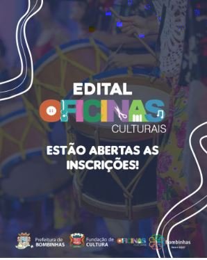 A Fundação Municipal de Cultura de Bombinhas – FMC, comunica que o edital para o Projeto Oficinas Culturais 2023 encontra-se publicado, disponibilizando as seguintes aulas: balé baby, balé infantil, balé juvenil/adulto, dança contemporânea, bateria infantil, bateria adulto, canto coral adulto, canto coral infantojuvenil, modelagem, cerâmica juvenil/adulto, guitarra, percussão iniciante, percussão intermediário, pintura infantil, pintura em tela juvenil/adulto, violão infantil, violão juvenil iniciante, violão juvenil intermediário, violão adulto iniciante, violão adulto intermediário, violino infantil, técnica de chor e técnica de blues e jazz. Além das oficinas, estão disponíveis as aulas preparatórias para inclusão na Banda Filarmônica de Bombinhas que são: flauta transversal, trompete, clarinete, trombone de vara, sax-alto, sax-tenor, bombardino, tuba, violino, bateria, violoncelo, baixo elétrico, contrabaixo acústico, percussão, piano e audição específica para vocal.