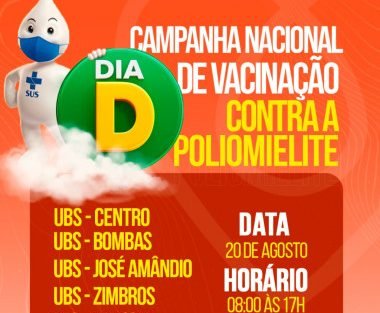 Bombinhas • Saúde DIA D DA CAMPANHA NACIONAL CONTRA PÓLIO E MULTIVACINAÇÃO É NESTE SÁBADO EM BOMBINHAS 18/08/2022